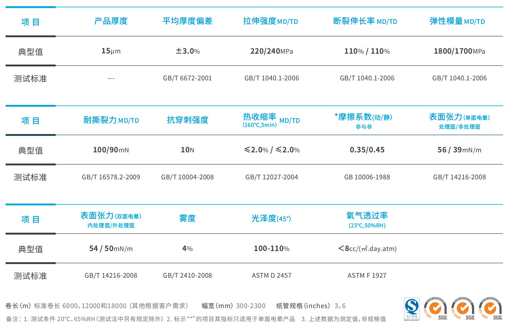各项性能(强度,收缩率,平整度,光洁度,雾度等)表现优异